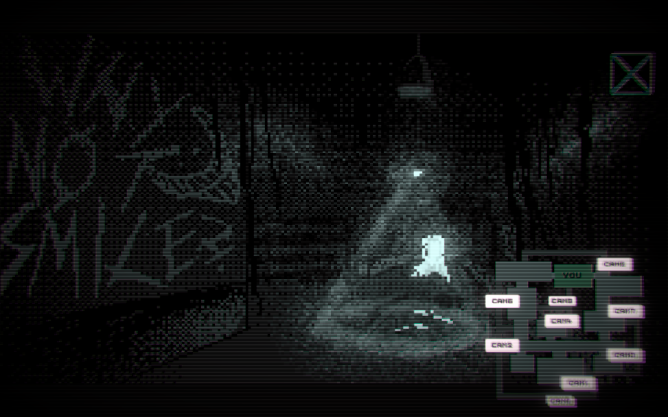 - Classic surveillance-based gameplay (cameras, doors, light)